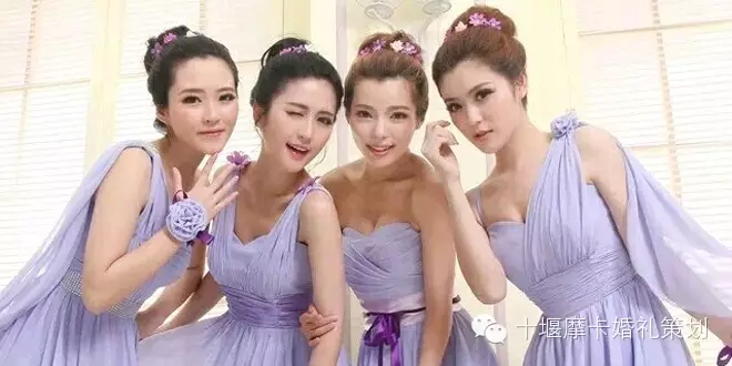 Fresh light blue is the color of quietly elegant, bridesmaid dresses to choose fresh light blue, white wedding dress collocation, can make the bride looks more elegant and quiet, and blue bridesmaid dresses very suitable for spring and summer wedding, oh.